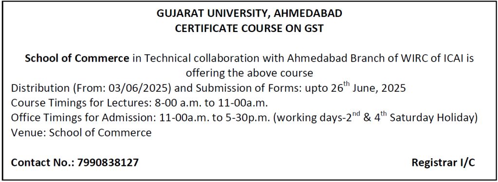 Certificate Course on GST – Gujarat University 2025 Admission Open